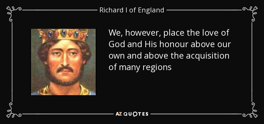 honour above our own and above the acquisition of many regions.” - Richard I of